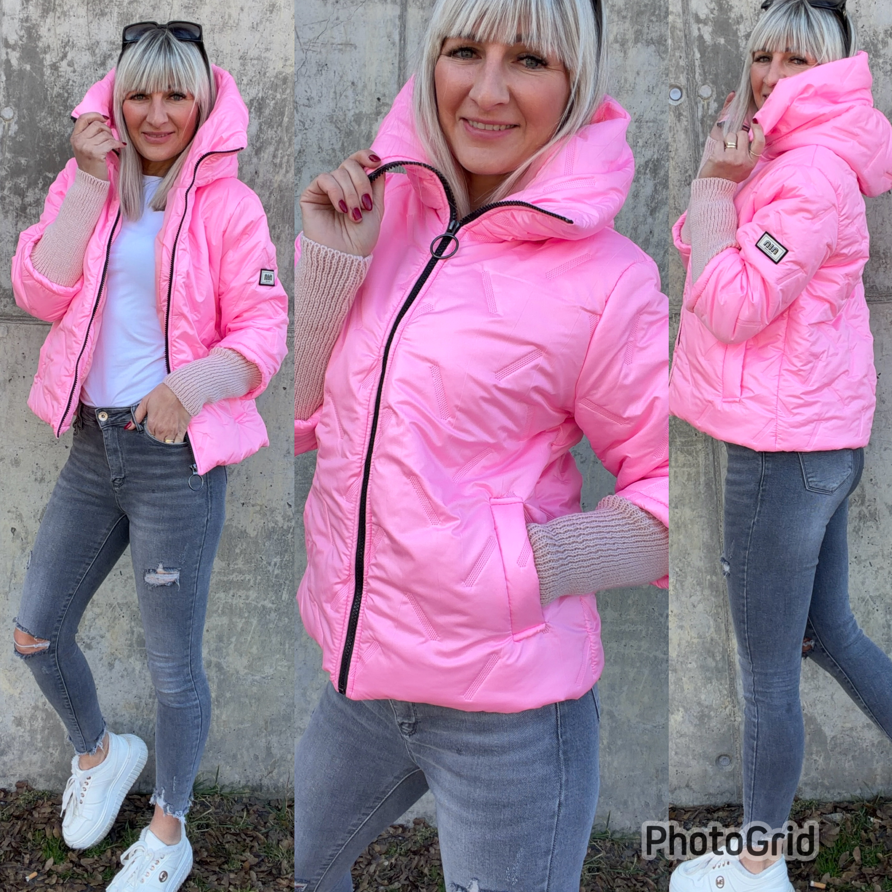 Stylová bunda s krásnými delšími náplety na rukávech.