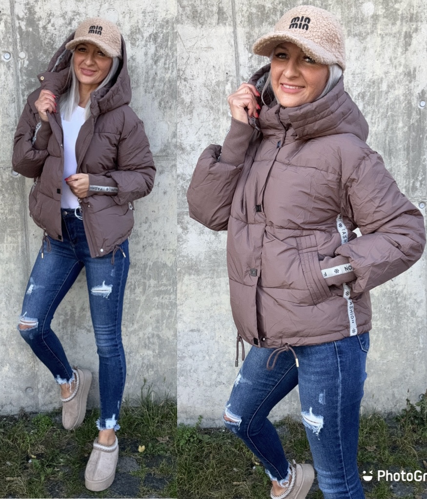Zimní krásná čokoládová bunda. Střihově lehce oversize. Ve spodní části šňůrky na stažení.
