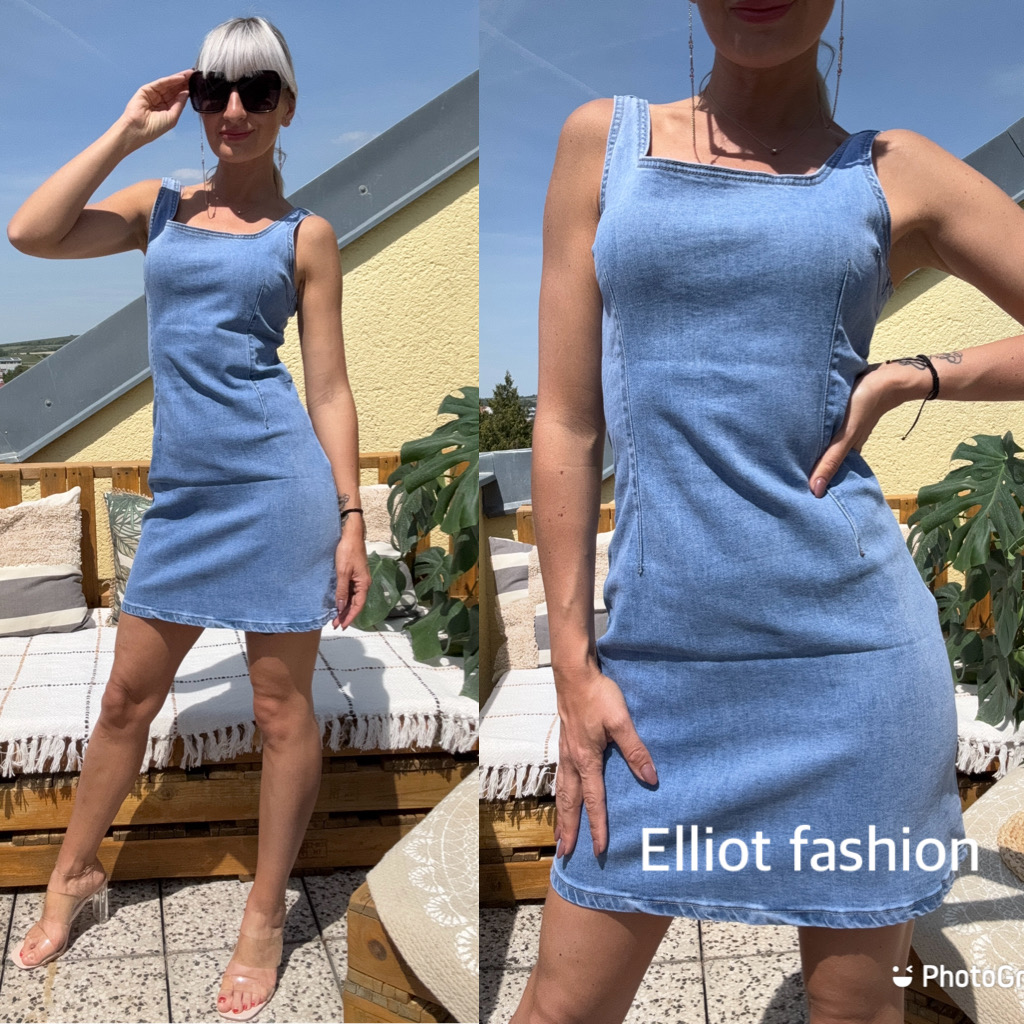 Pohodlné, pružné denim šaty. Vzadu se zapínají na zip.