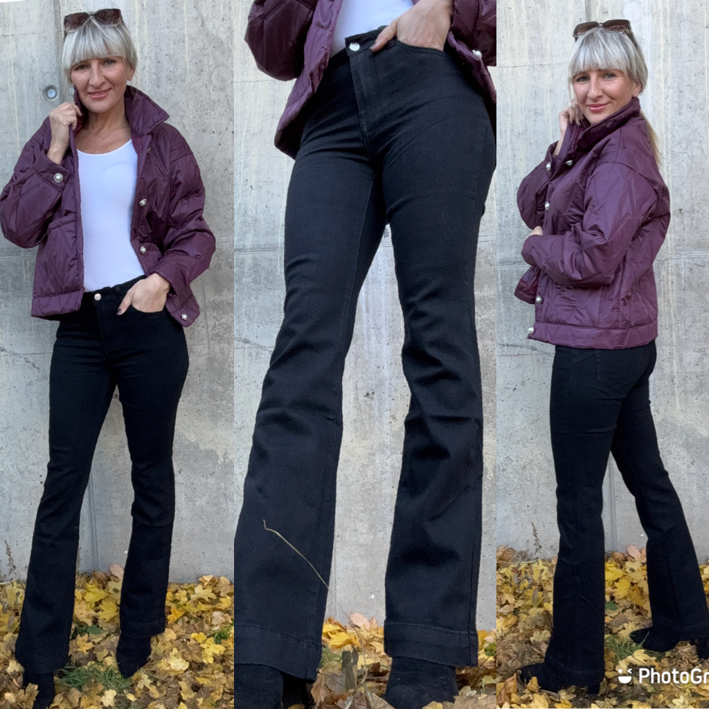 Jeans do lehce zvonového střihu. Pružný materiál.