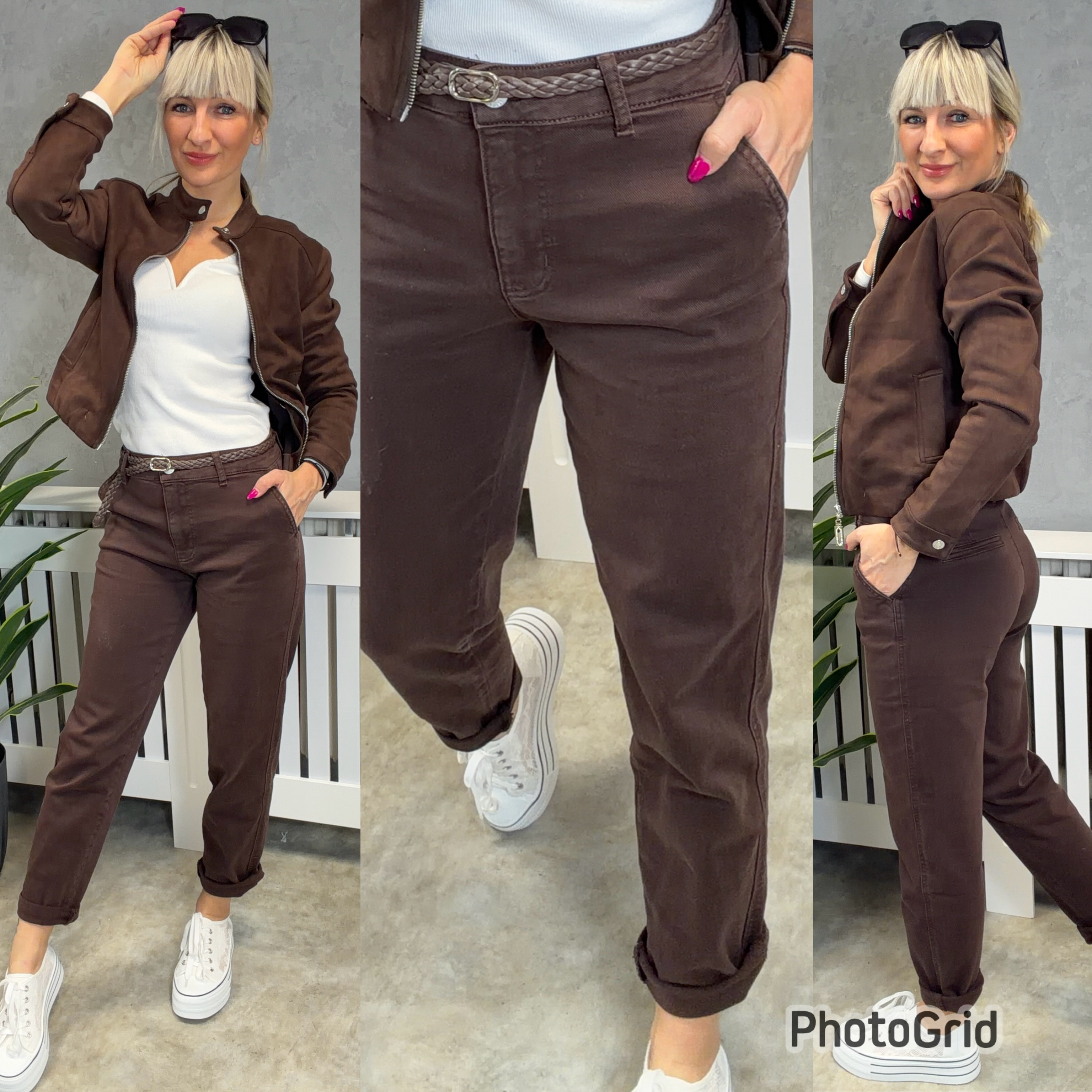 Pružné jeans včetně pásku. Šikmé kapsičky.