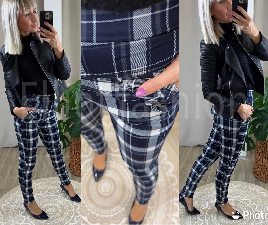Kárované zateplené kalhoty s vyšším pasem.
