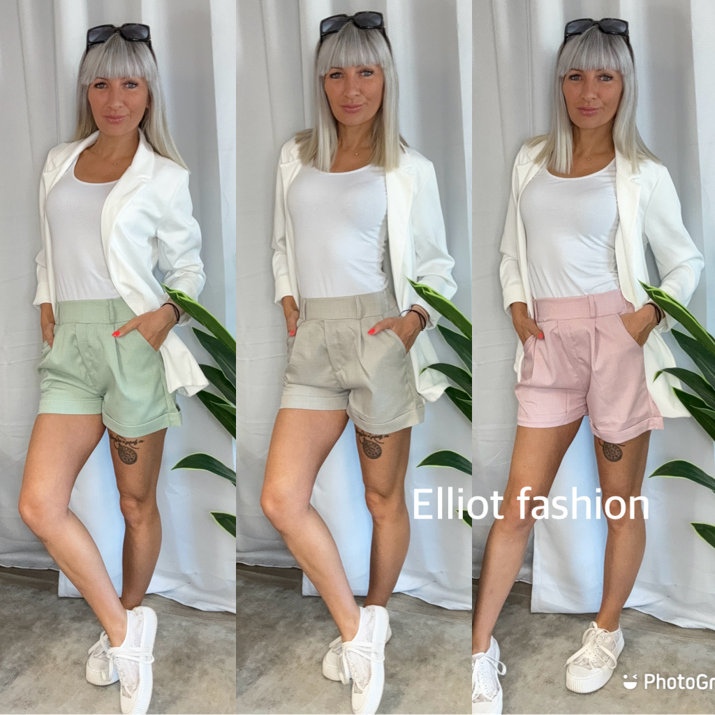 Elegantně-sportovní kraťásky. V pase jsou na gumu, plus maji poutka na pásek.