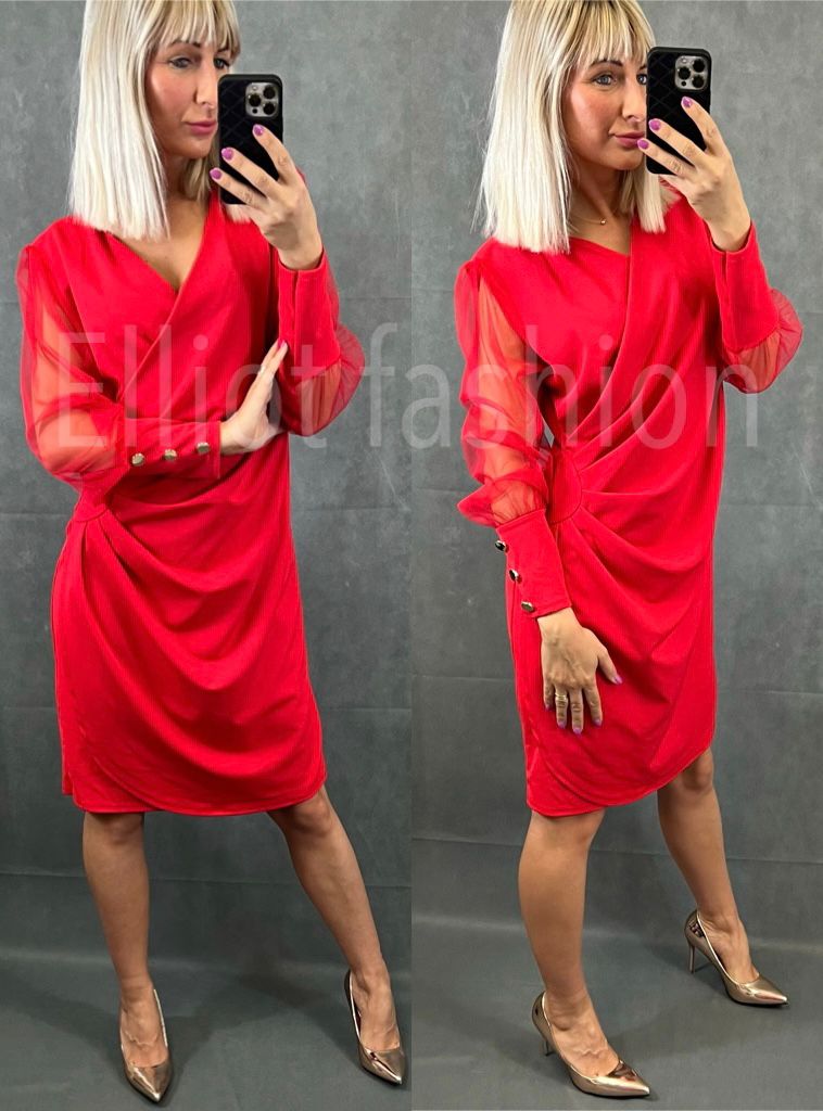 Elegantní šaty, výstřih do V zdobené síťovinou se zlatými cvoky.