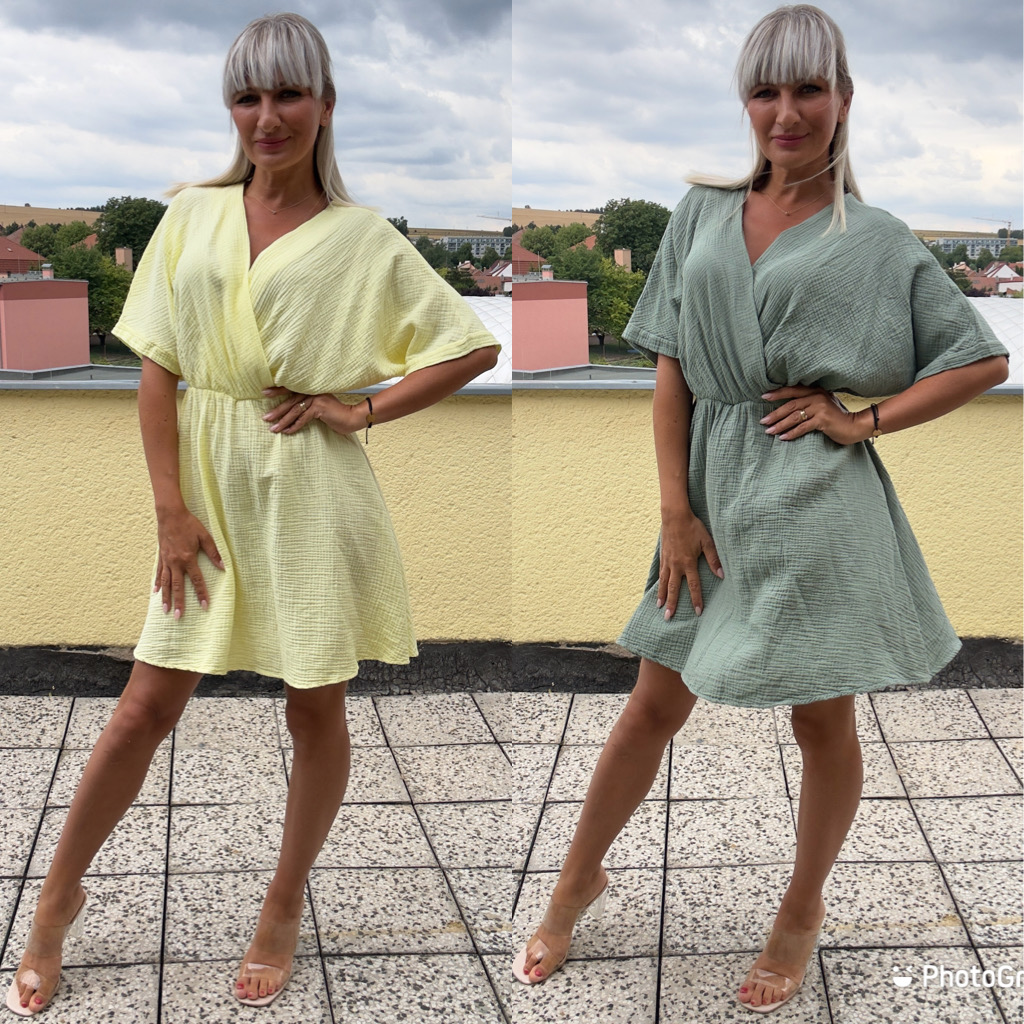 Mušelínové šaty s gumičkou v pase.